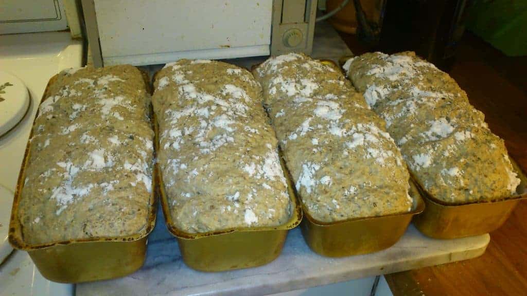 The recipe will make 4 x 850g loaves (1.5lt bread tins).